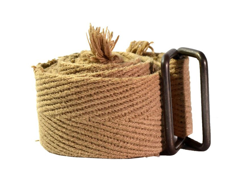 Стильный текстильный ремень, декорированный полоской и фирменным логотипом. Застежка на металлическую пряжку. Отличный вариант на каждый день.